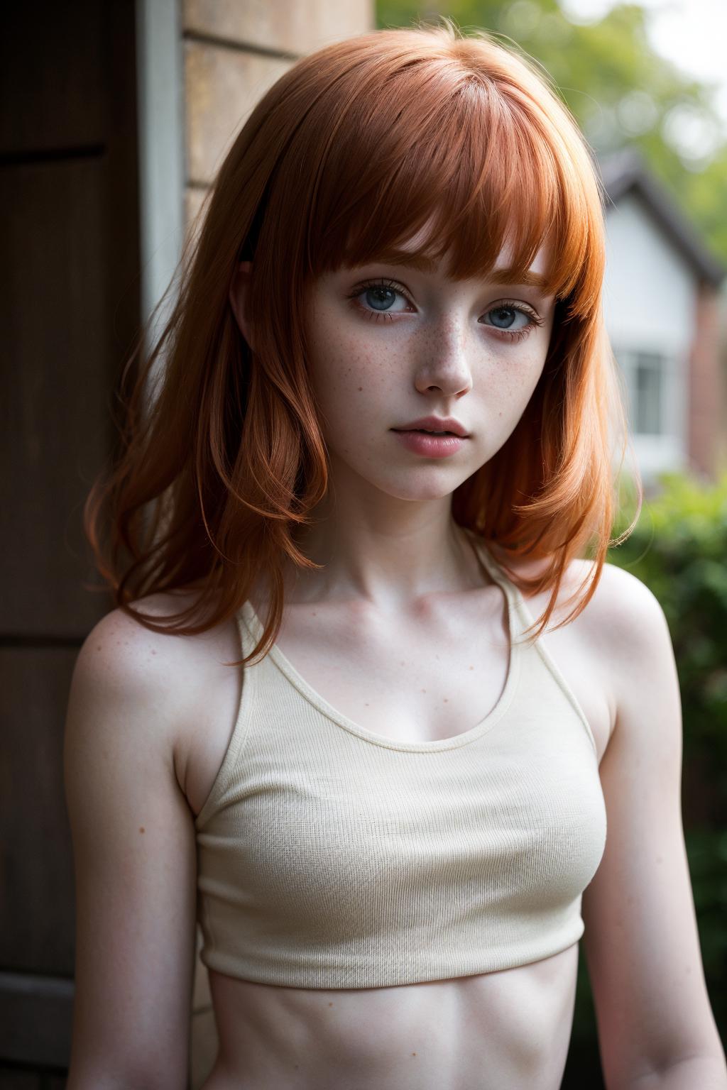 (dynamic angle:1.1),outdoors, ginger hair, photo of skinny 20yo girl, freckles, sad, soft, masterpiece, volumetric light, best quality, complimentary colors, dramatic lighting, intricate details, subsurface scattering,