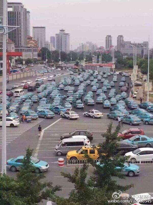 今天看天津出租围堵专车,简直就是流氓打群架,让人笑话,出租车的形象都毁了。