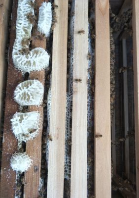 Posted in养蜂日记 一脾半蜂一个月的发展情况 Posted by By Honey 07/01/2017No CommentsPosted in养蜂日记 一个是子脾比较好的,一脾封盖子,加顶多有一脾蜂。 经历一个月,变成四个满脾加半个脾蜂量很足,很旺。 另一个箱子里,工产过,半个月时间工蜂都在清理雄蜂卵。 新王产卵好像也不怎么样。至今总量不足一脾。 Honey 威海养蜂人 artfax.com View All Posts Post navigation Previous Post 小方箱急造王台Next Post小方箱稳定起来