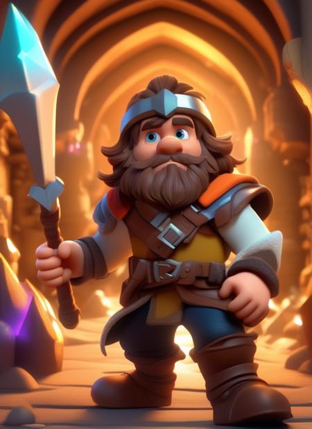 best quality, masterpiece, of a male, dressed as a Rogue, with brown hair, with a male fantasy hairstyle, wearing a helmet, portrait, stood, In a subterranean city lit by luminescent crystals, inhabited by dwarves,, disney cartoon, cute cartoon, cinematic, volumetric lighting, highly detailed, 8k