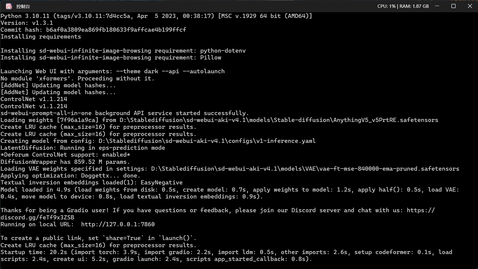 点击右下角一键启动即可运行Stable Diffusion ,它先会弹出启动控制台!