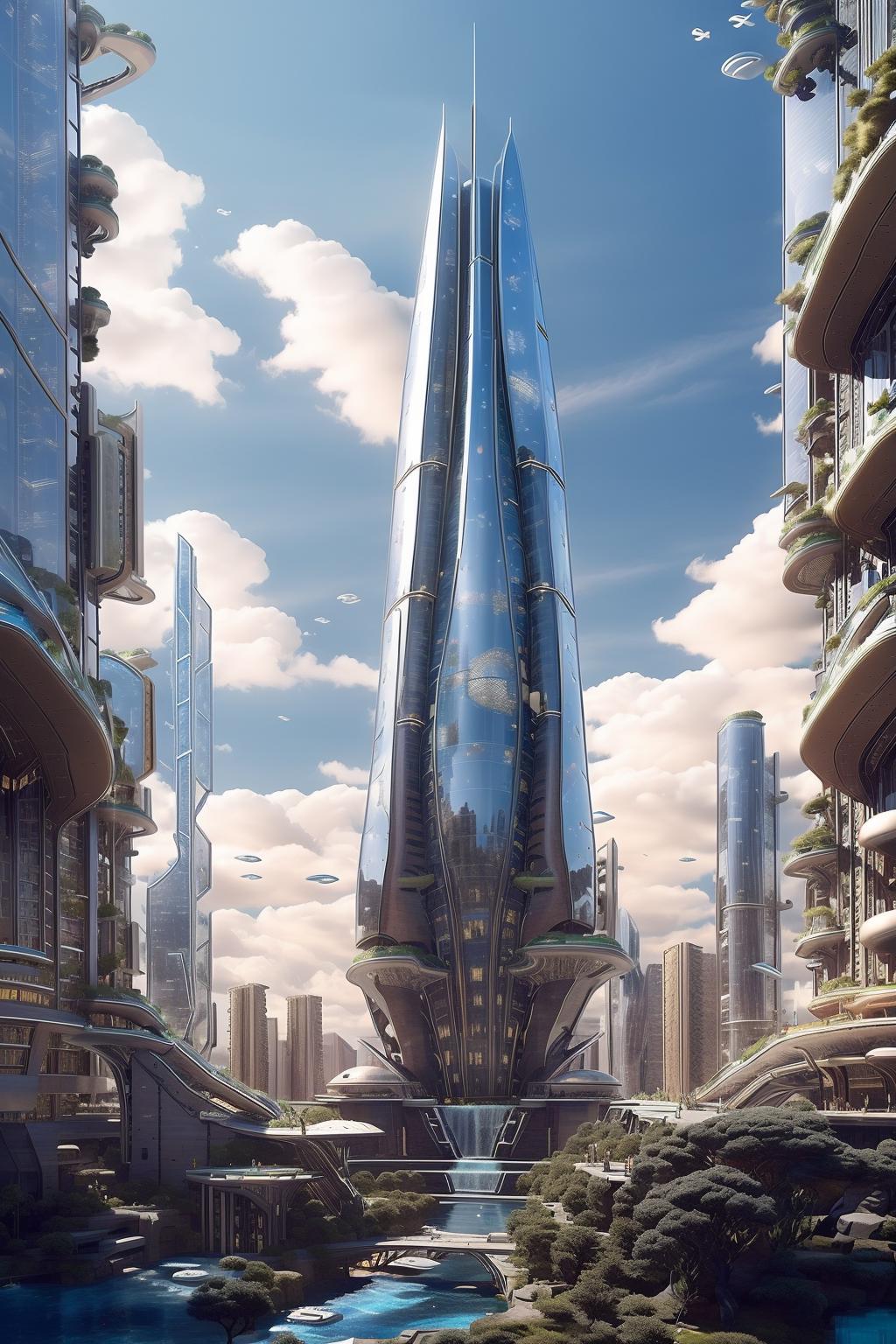(masterpiece),(high quality), best quality, real,(realistic), super detailed, (full detail),(4k),8k,outside,no humans,road, outdoors, building, science fiction, realistic, scenery, city,sky, The ship is in the air<lora:XSArchi_127:1>