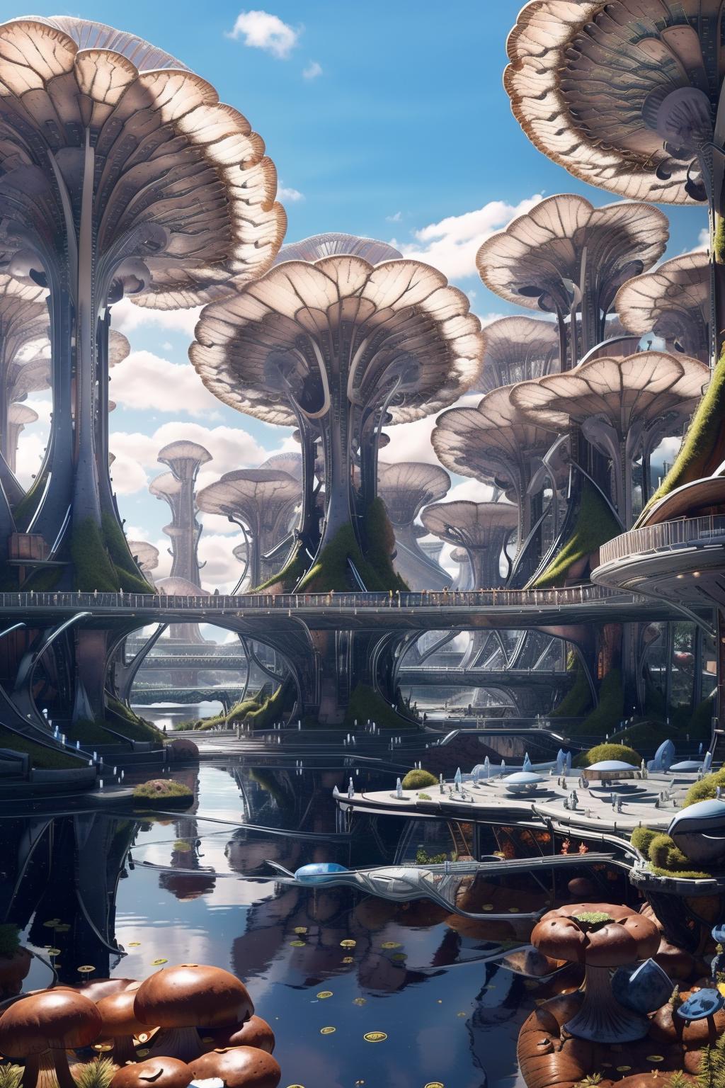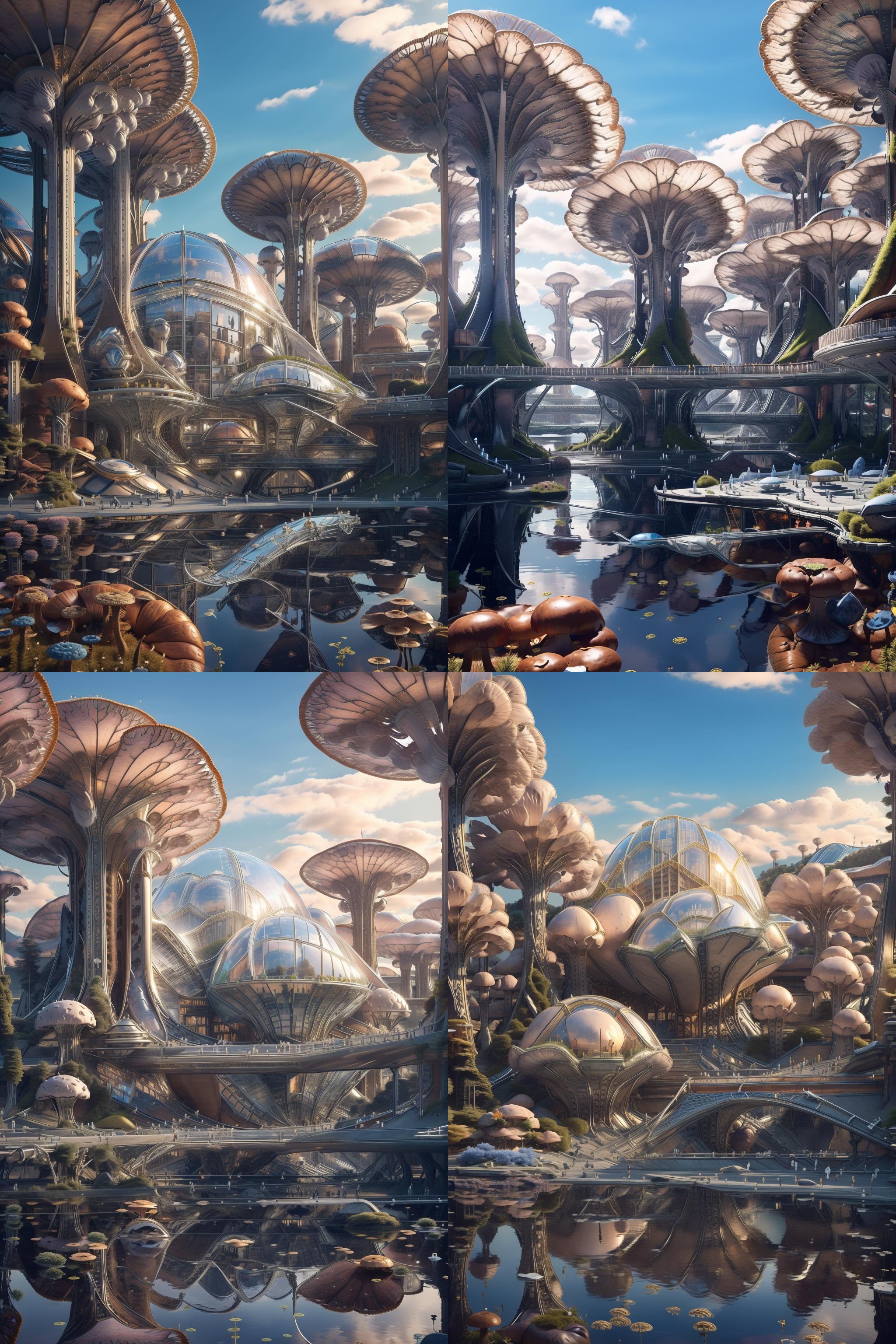 例如:想要一个由蘑菇为主元素组成的科幻城市,就輸入 a sci-fi city with mushrooms as the main element.