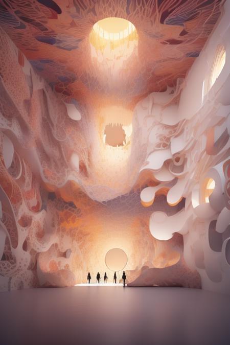 <lora:Mr_MC_S-ART_V1:1>,Mr_MC_S-ART_V1,Flowing curve,Flowing Space,insert,Three-dimensional sculpture,The ever-changing space,The light of God,(A circular space,The undulating ground),artist ,<lora:Mr_MC_indoorV1:0.35>,zaha,comic,color,8K